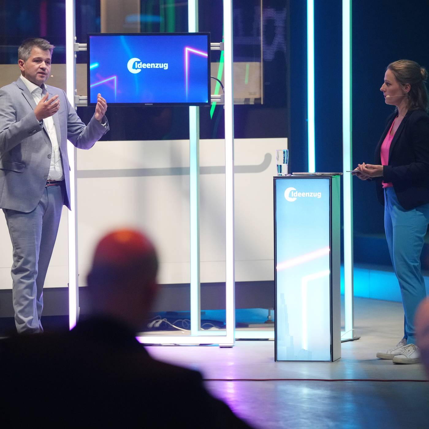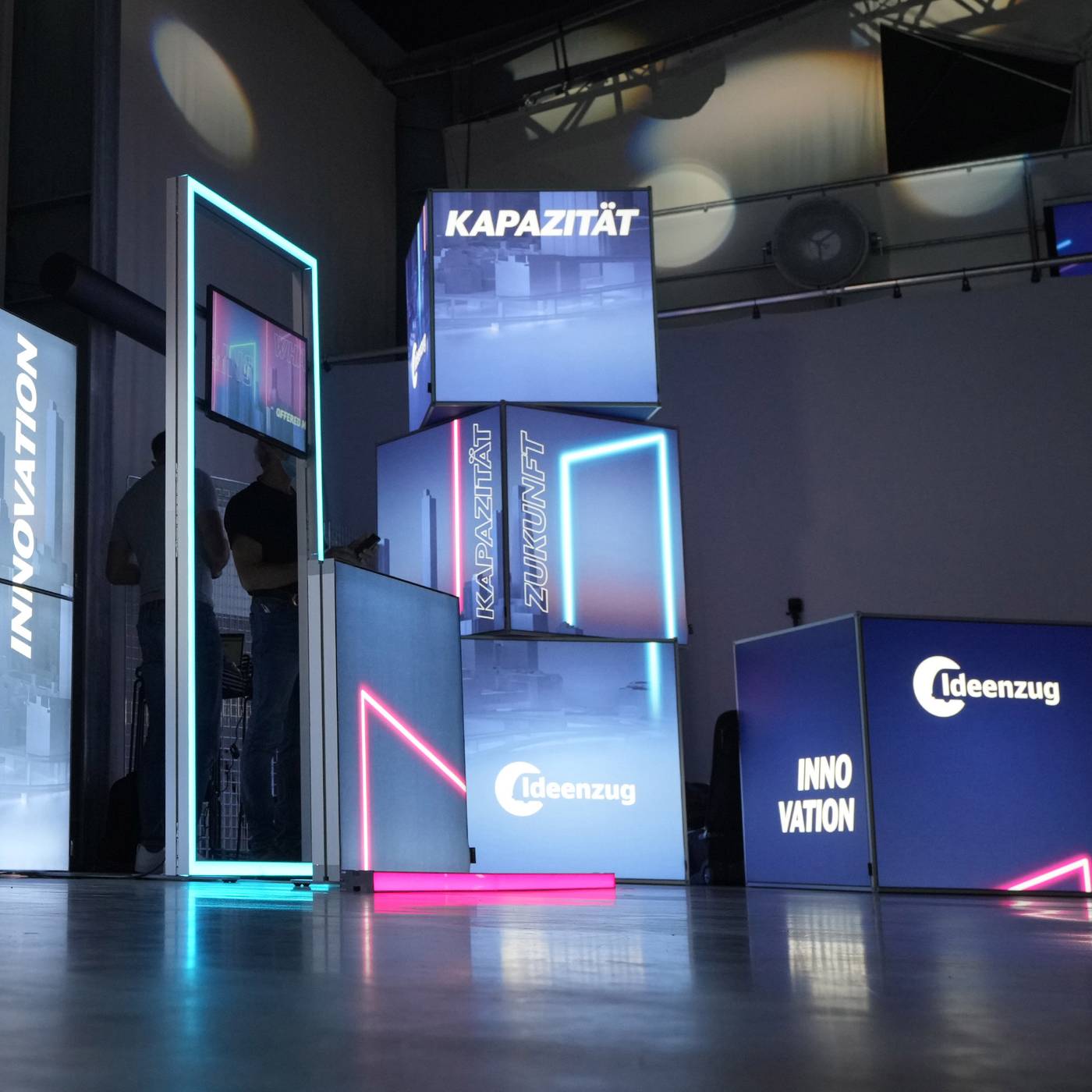 Für die Umsetzung der Initiative IDEENZUG nutzt die Deutsche Bahn Lightboxes, Leuchtkonturen und Leuchtwürfel von Modulap ONE.