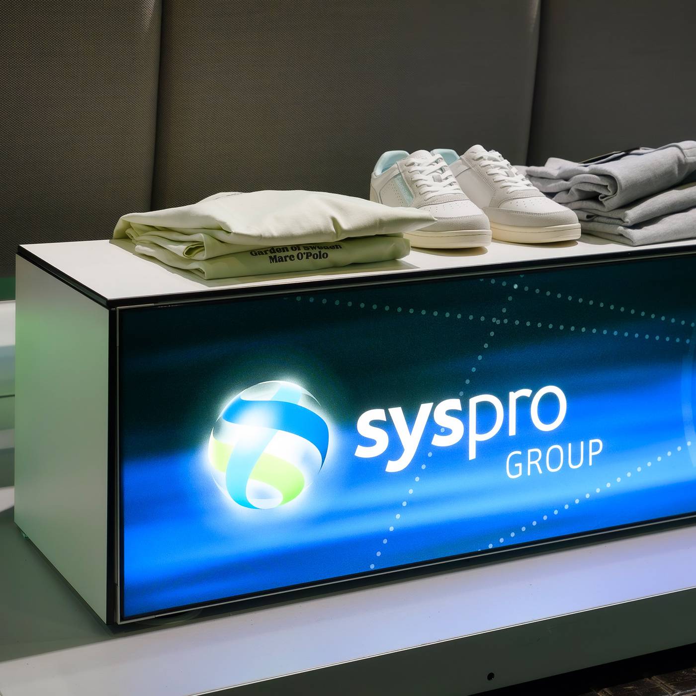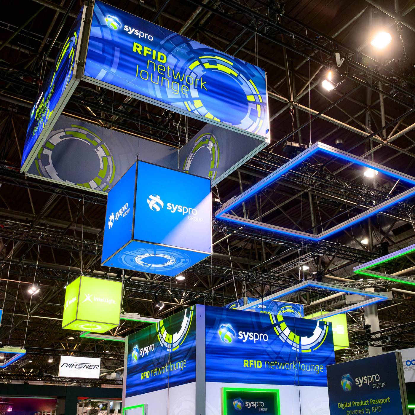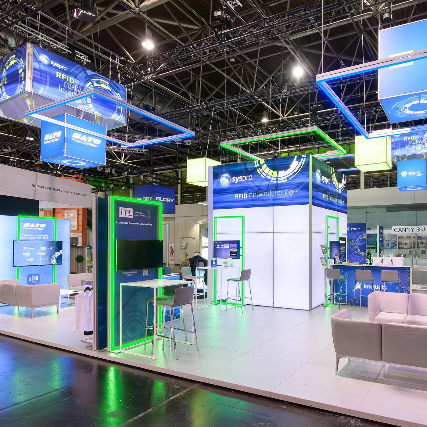 Der komplette Messestand entsteht aus modularen Messebau-Elementen wie Lightframes, Lightboxes und Cubes sowie unserem Systemboden. Alle Elemente sind 100% wiederverwendbar, schnell auf- und abbaubar und werden im platzsparenden, sicheren Transportsystem geliefert. Durch die modulare Bauweise und das intelligente Verpackungssystem kann syspro den Stand flexibel in Grundriss, Größe und Funktion variieren und so jederzeit an neue Stellsituationen anpassen – oder bei Bedarf durch weitere Elemente ergänzen. So ist der modulare Brand Space von syspro ein starkes Beispiel dafür, wie ein Messestand zusammen mit dem Unternehmen und den Auftritten wachsen kann – bedarfsgerecht, mit minimalem Aufwand und besonders ressourcenschonend.