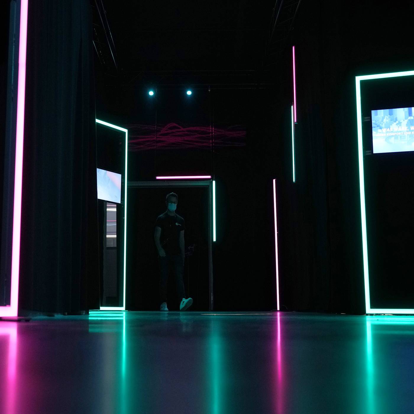 The strategic project aims to rethink trains and public transport in the context of future mobility concepts. For the multimedia kick-off event, Deutsche Bahn and its partners chose an inspiring, flexible architecture from Modulap ONE. The Modulap light walls, light contours and counters formed the visual framework for the event and the numerous contents, such as panel discussions and multimedia live performances. A highlight was the demonstration of a complete S-Bahn regional train in high-tech design. Numerous screens with digital content were integrated into the setup using the tool-free Modulap screen mounts.