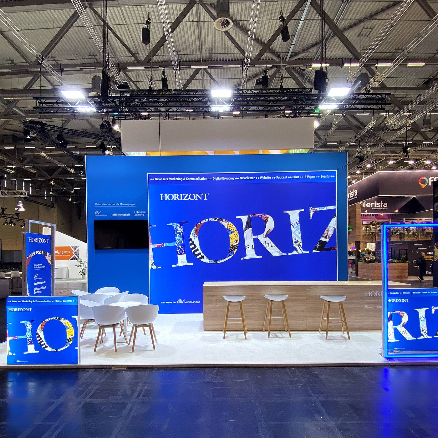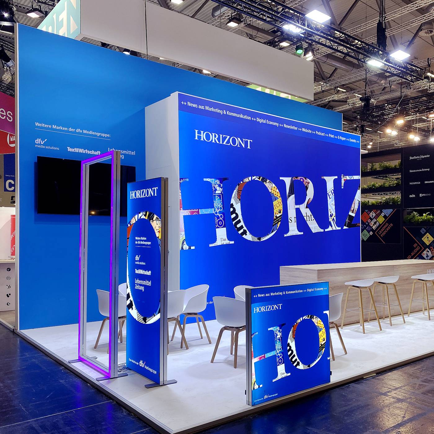 For the appearance at DMEXCO 2022, the trade fair for digital marketing and the largest exhibition for the digital industry in Europe, the trade magazine HORIZONT uses modules from Modulap for the current exhibition stand. Large-format lightboxes, freestanding elements, integrated screens, and numerous seating options create an open atmosphere that invites dialogue. The stand is completely reusable. The sleek and user-friendly design reduces setup times, weight, and packing dimensions to a minimum. Thus, the modular exhibition stand helps to save valuable resources and make the trade fair presence even more ecologically sustainable. Thanks to ATE and Linda Wortmann Design for the successful project!
