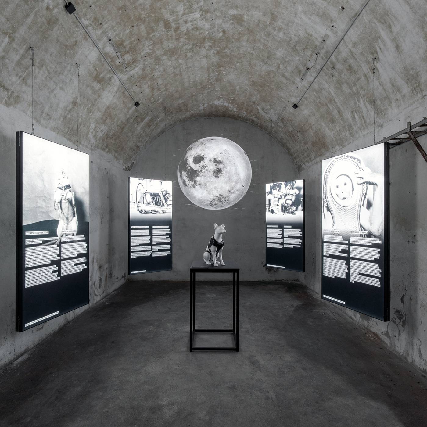 The design studio please don't touch from Dortmund develops distinctive concepts for communication in space. The permanent exhibition THE CAVE in the bunker beneath the TIERART site in Maßweiler tells of animals during times of war. The underground bunker was once part of the so-called Western Wall and later served during the Cold War as a storage for nuclear warheads. The rooms were used by the team from please don’t touch to present animals as one of the many groups of victims in a war. We are pleased that we could contribute to this moving exhibition with specially made lightboxes and parts of the signage concept.