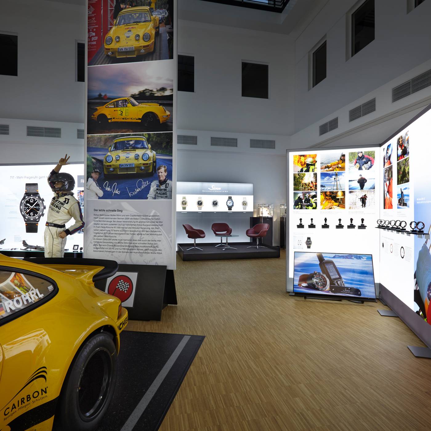SINN, a leading manufacturer of specialty watches, presents from February 22 to April 6, 2023, a major special exhibition at its company building in Frankfurt am Main. The representative atrium will be transformed into a museum-like space. In addition to the spring novelties of 2023, numerous historical photos and exhibits related to the company's history will be exclusively and for the first time on display. These include a Sinn Nabo Navigation Cockpit Clock 17, which survived the crash of a fighter jet unscathed, or the Reile-Porsche 911 RSR, with which Walter Röhrl won the Rally Costa Brava, featuring a Sinn 917 Rallye Chronograph on the hood.