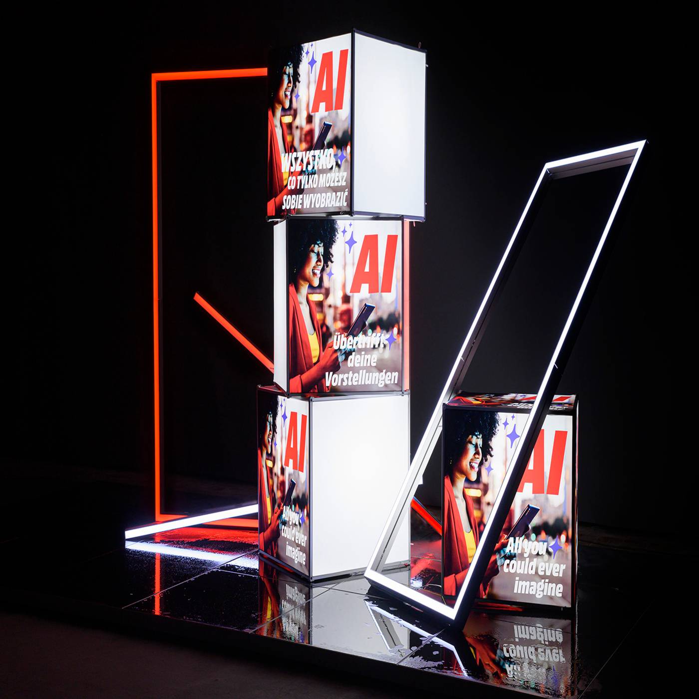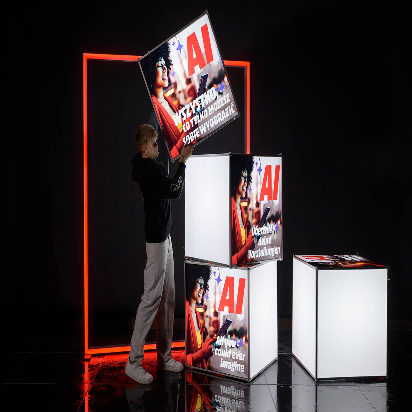 De plus en plus de produits électroniques sont équipés d'intelligence artificielle (IA) intégrée et offrent un accès à des assistants IA. MediaMarktSaturn, la plus grande chaîne de magasins d'électronique en Europe, met donc l'accent sur ce sujet avec une campagne marketing à l'échelle européenne pour attirer l'attention des clientes et clients. La campagne multimédia couvre les canaux en ligne numériques et tous les magasins spécialisés. Elle vise à rendre l'IA visible dans les différents groupes de produits, à sensibiliser aux possibilités de la technologie et à informer. Plusieurs phases de la campagne mettront en lumière différents outils IA. Le déploiement à travers les différents sites est accompagné par MediaMarktSaturn avec des Cube Displays flexibles de Modulap. Ces cubes lumineux et frappants sont légers, très rapides à installer et offrent de multiples possibilités de design. Ils assurent la présence de la campagne sur les surfaces de vente et aident à transmettre les messages. Des remplissages textiles rapidement interchangeables et produits de manière durable permettent d'adapter les contenus de manière flexible au fil du temps. Grâce aux dimensions minimales des emballages des Cubes, la logistique est considérablement simplifiée. Le déploiement commence avec le lancement en Autriche, en Pologne et en Suisse. Par la suite, la campagne IA sera étendue à tous les marchés européens de MediaMarktSaturn et sera visible dans environ 1000 emplacements.