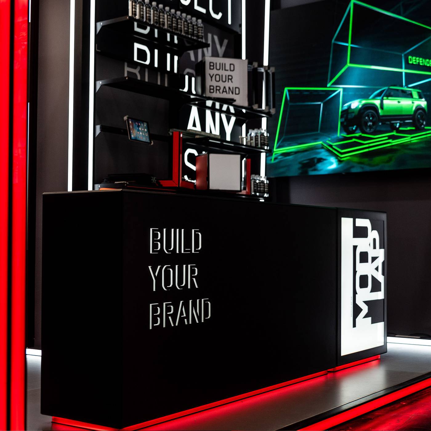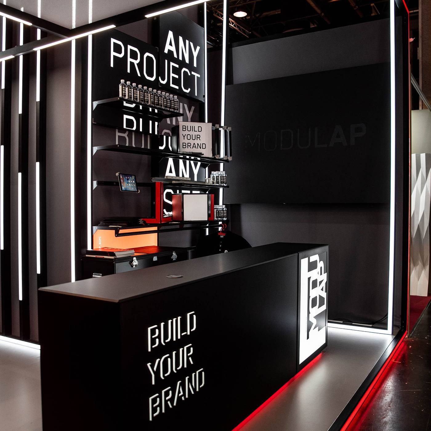 Sur les images, tu vois par exemple un stand d'exposition Modulap de l'Euroshop 2021 à Düsseldorf.
